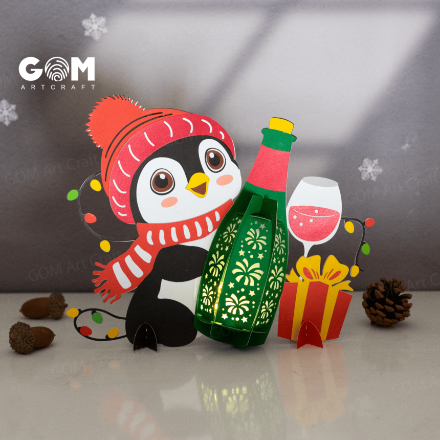 Set 3 Christmas Pop-up Card, Penguin-Bear-Gnome Christmas Pop-up Card, DIY Pop-up Card Christmas Ornaments, 3D Christmas Papercut Card 3D, GOMArtCraft