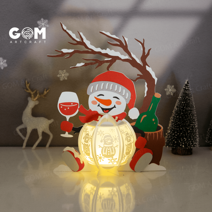 Snowman Lantern SVG, Happy New Year Lantern, Snowman Christmas Lantern, DIY Lantern Christmas Ornaments, Paper Cut Template For Christmas