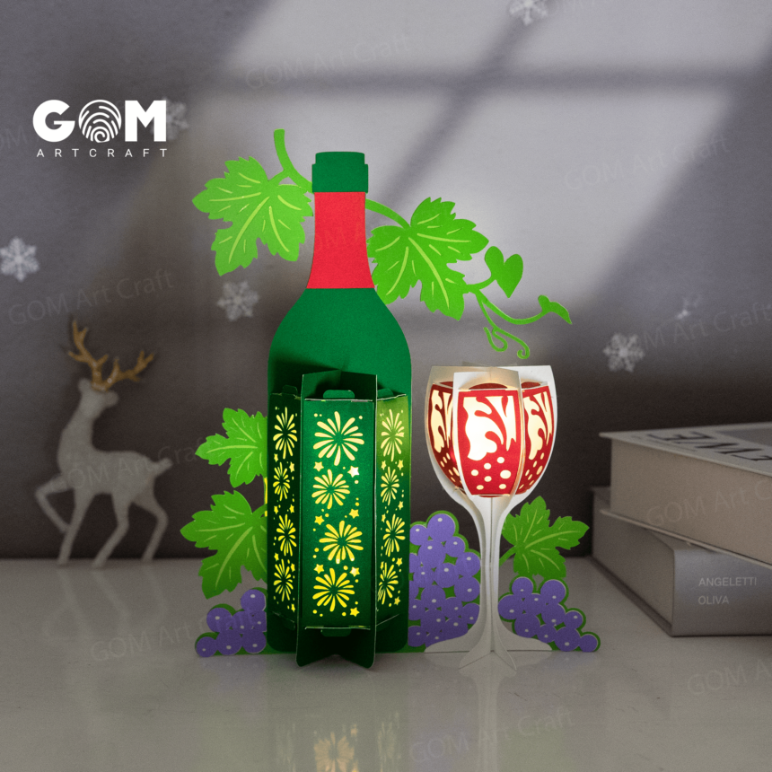 Christmas Wine Bottle Lantern SVG, Paper Cut Template For Christmas, DIY Lantern Christmas Ornaments, Paper Lanterns For Christmas