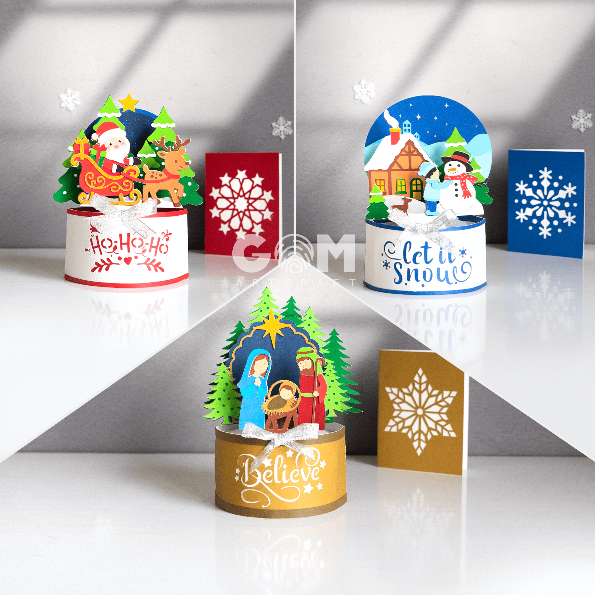 Set 3 Christmas Pop-up Card 3D, Santa Claus Pop-up Card SVG, Snowman Pop-up Card, Nativity Scene Pop-up Card 3D, GOMArtCraft