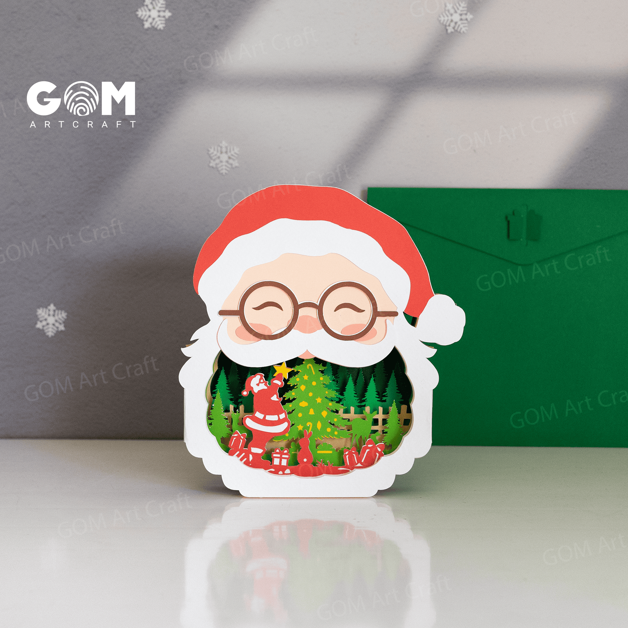 Santa Claus Pop-up Card 3D, DIY Pop-up Card Christmas Ornaments, 3D Christmas Papercut Card, Paper Cut Template For Christmas, GOMArtCraft