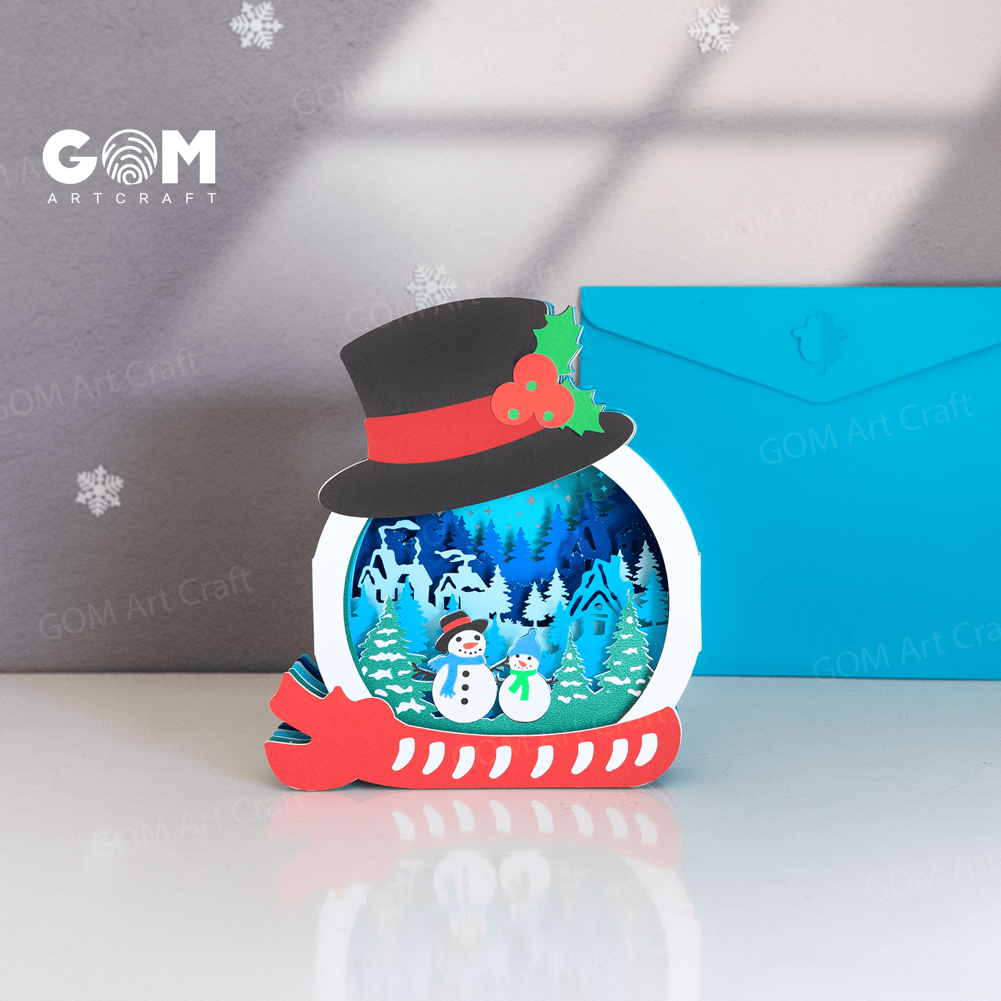 Snowman Pop-up Card 3D, DIY Pop-up Card Christmas Ornaments SVG, 3D Christmas Papercut Card, Snowman Paper Cut Template For Christmas, GOMArtCraft