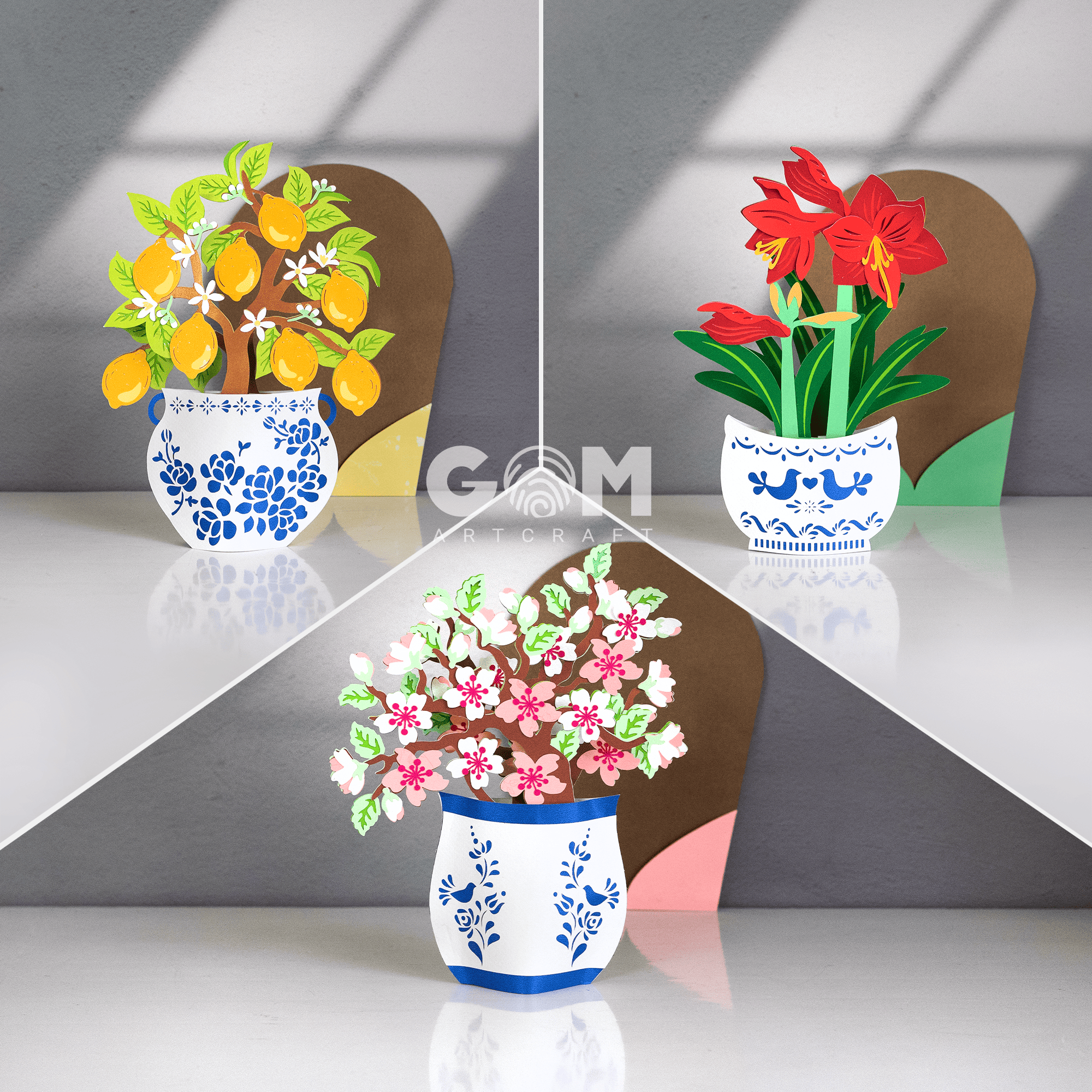 Set 3 Christmas Vase Pop-up Card 3D, Christmas Tree Pot Pop-up Card SVG, DIY Pop-up Card Christmas Ornaments, 3D Christmas Papercut Card, GOMArtCraft
