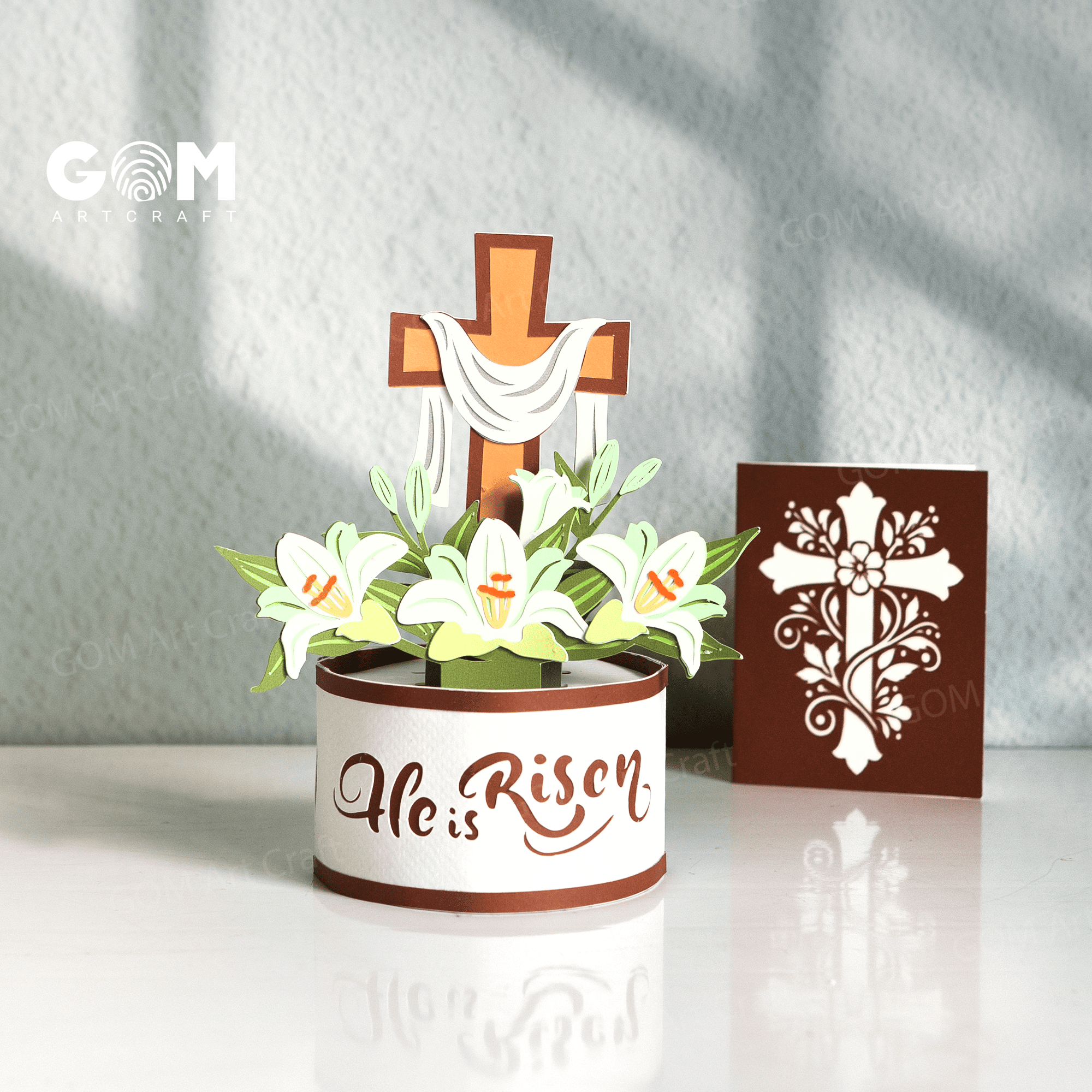 Resurrection Pop-up Card SVG, Cross Pop-up Card Template, DIY Easter Decorations Paper Card,He is Risen Card 3D GOMArtCraft