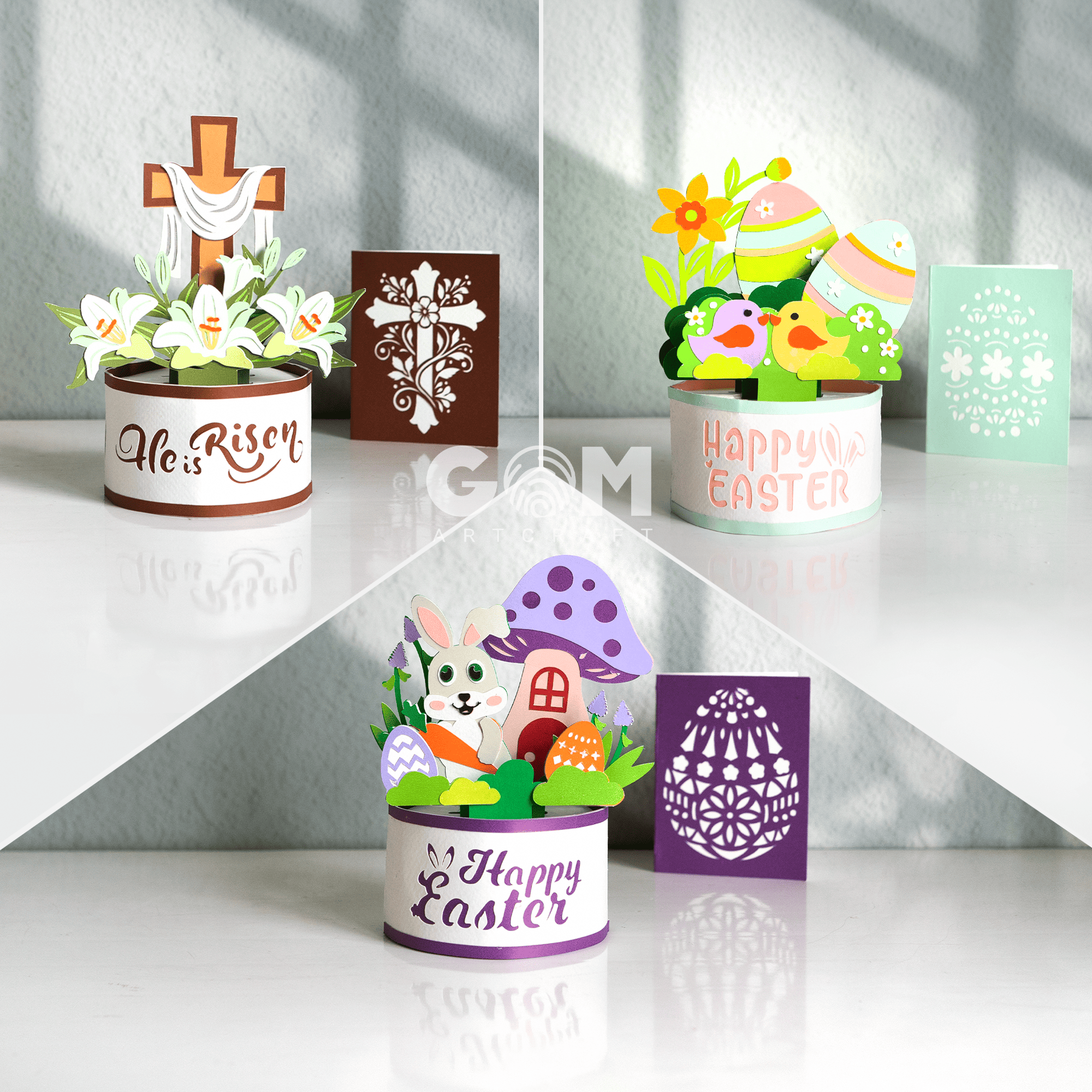 Set 3 Easter Pop-up Card Template, DIY Paper Easter Egg Card, Bunny Easter Paper Cut SVG GOMArtCraft
