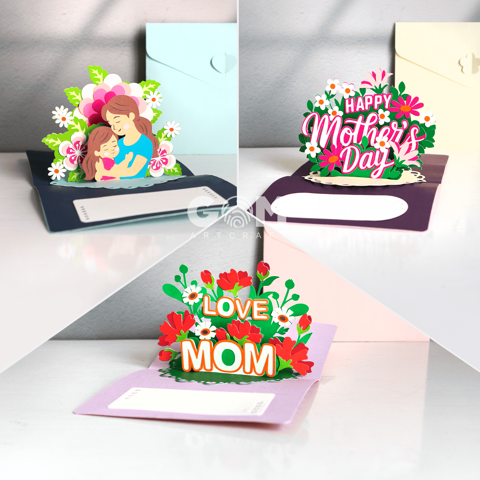 Set 3 Mother’s Day Pop-up Card Template, Flower Card 3D, DIY Mom Gift GOMArtCraft (Digital Download)
