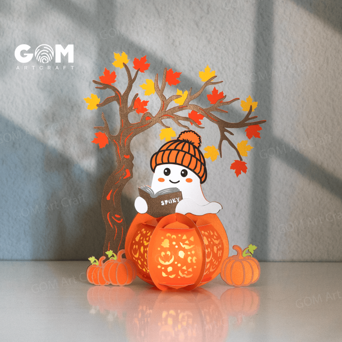 Ghost and Pumpkin Lantern SVG, Paper Lantern for Halloween Decoration, 3D Halloween Papercut, Halloween Lantern SVG, DIY Pumpkin Halloween GOMArtCraft