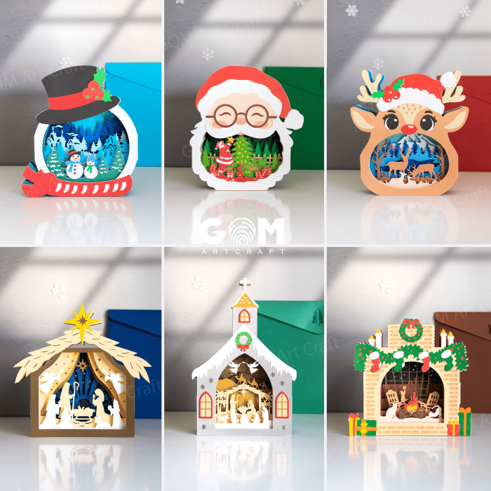 Set 6 Christmas Pop-up Card 3D, Santa Claus-Snowman-Reindeer Pop-up Card, DIY Pop-up Card Christmas Ornaments, Nativity Scene Pop-up Card 3D, GOMArtCraft