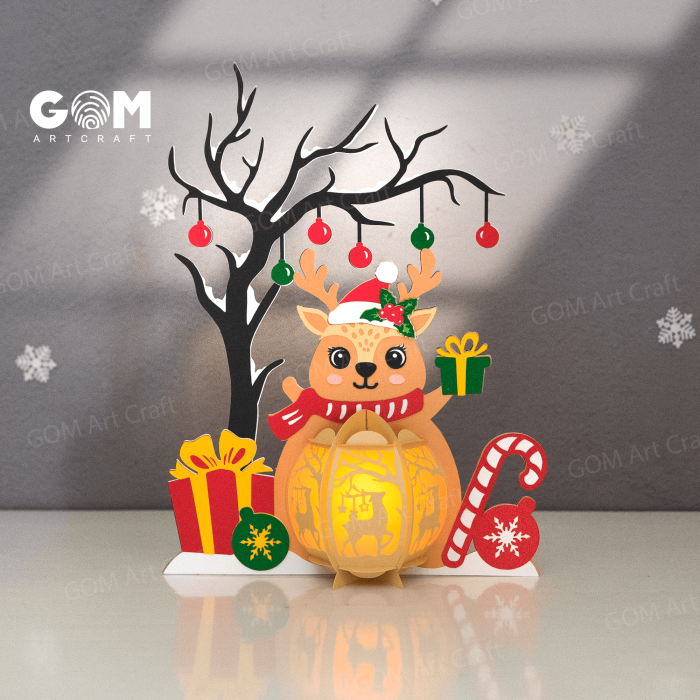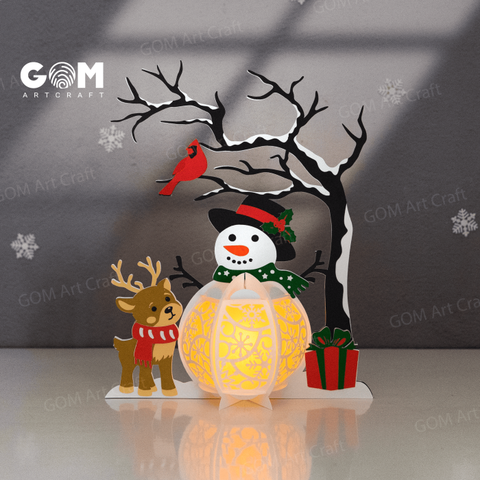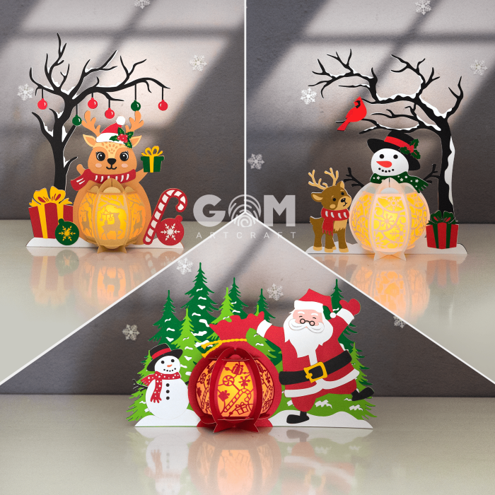 Set 3 Christmas Lantern SVG, Santa Claus-Snowman-Reindeer Lantern, GOMArtCraft