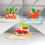 Set 3 Christmas Letter Pop-up Card Template, Santa Sleigh 3D Card, Noel Car Pop-up Card SVG, GOMArtCraft